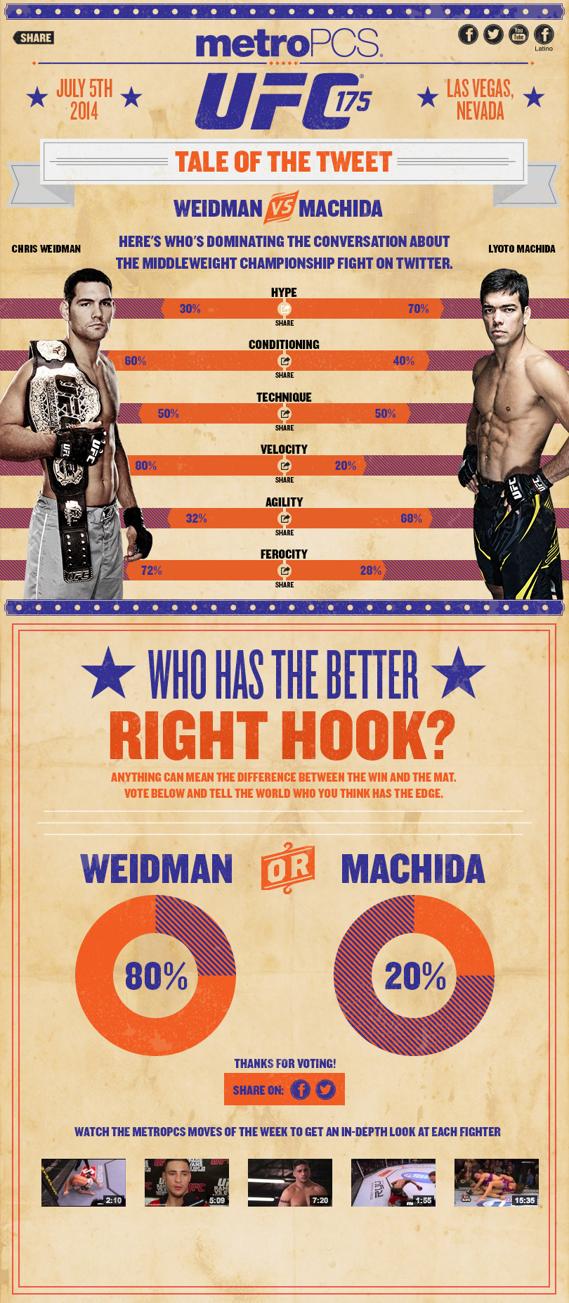 Facebook application which measured the pre-fight sentiment being shared across social channels, in real time, for each of the UFC fighters